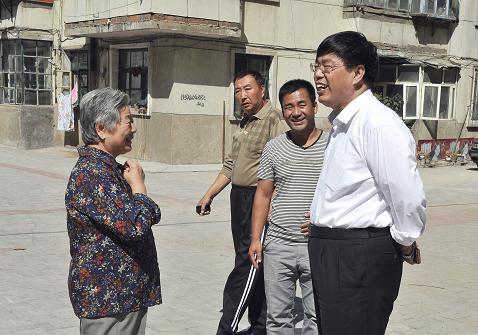 省市人大代表劉義(右一)與住區(qū)居民親切交談
