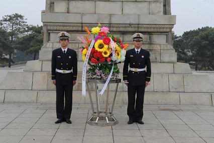 4月1日下午,我們在系教員常路賓帶領(lǐng)下,來到位于錦州的遼沈戰(zhàn)役紀(jì)念館,向英雄紀(jì)念碑敬獻(xiàn)花籃。儀式在雄壯激昂的《獻(xiàn)花曲》中拉開序幕,兩名禮兵邁著鏗鏘有力的禮步將花籃緩緩送到紀(jì)念塔正前方?;ɑ@挽聯(lián)上寫道:“功業(yè)常齊天地永,紅旗自由后人擎;中國人民解放軍海軍工程大學(xué)敬挽。”在主持人的組織下,我們統(tǒng)一脫帽,向烈士紀(jì)念塔默哀一分鐘。并重溫了入伍宣誓。最后,教員對我們說道:“同志們,歷史證明,強(qiáng)國必先強(qiáng)軍。今天的你們是以共和國未來海軍軍官的身份來到此地,更應(yīng)當(dāng)學(xué)習(xí)先烈們的優(yōu)秀品質(zhì),不斷磨礪自己,努力提升自己,在強(qiáng)軍興軍的征程上奉獻(xiàn)自己的青春熱血!”