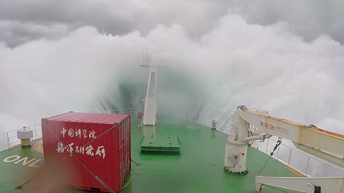在船上的54天里,我們布放了14套潛標(biāo),回收了11套潛標(biāo),累計(jì)布放803件,回收了294件,其中也包括我們所生產(chǎn)的ADCP。雖然我主要負(fù)責(zé)我們的設(shè)備,但也負(fù)責(zé)了所有的潛標(biāo)布放,而在布放的過程中,最常見的天氣就是高溫炎熱,因?yàn)榇耙恢痹诔嗟栏浇鳂I(yè),所以船甲板溫度在40度以上,我們常常頂著毒辣的太陽在甲板上布放,也讓布放增加了難度,而還有個(gè)自然因素就是以迅雷不及掩耳之勢襲來的暴雨,我們經(jīng)常在暴雨中連續(xù)作業(yè),全身都濕透了,也只能頂著暴雨堅(jiān)守戰(zhàn)地。而值得一提的是當(dāng)大風(fēng)以20m/s速度襲來時(shí),浪花直接拍到了6層駕駛室的玻璃上,仿佛將要把我們吞沒,此時(shí)看著浩瀚無邊的海洋,一道道波浪不斷涌來,撞擊在船體上,發(fā)出天崩地裂的吼聲,噴濺著雪白的泡沫。是那樣的壯觀。當(dāng)一切都回歸平靜的時(shí)候,又是那樣的云淡風(fēng)輕。